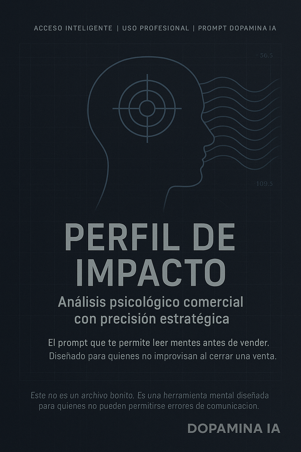 Un prompt premium para ChatGPT diseñado para mapear perfiles psicológicos y emocionales con enfoque estratégico. Te ayuda a interpretar la forma de pensar, decidir y conectar de cualquier persona: clientes, audiencia, pareja o tú mismo.