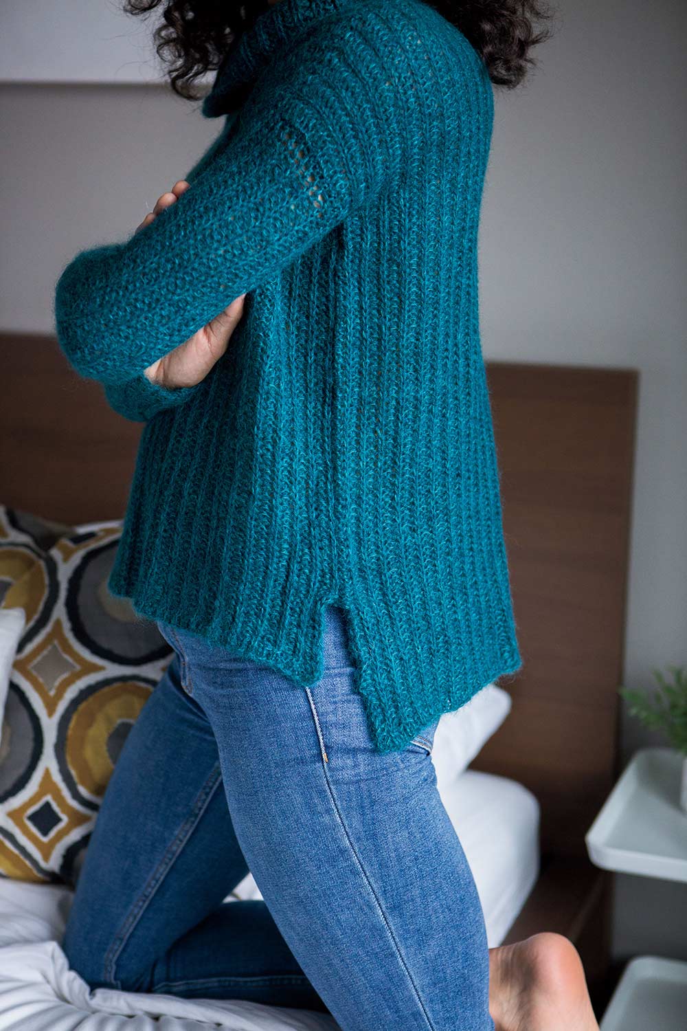 Luxury fibers and a relaxed silhouette combine to make this your new favorite sweater. A simple broken fisherman’s rib stitch creates the texture; a split hem in two lengths and plenty of positive ease create the modern, easygoing shape.