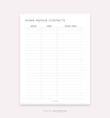 Home Repair Contacts, Digital Template for Goodnotes, Notability, Ipad