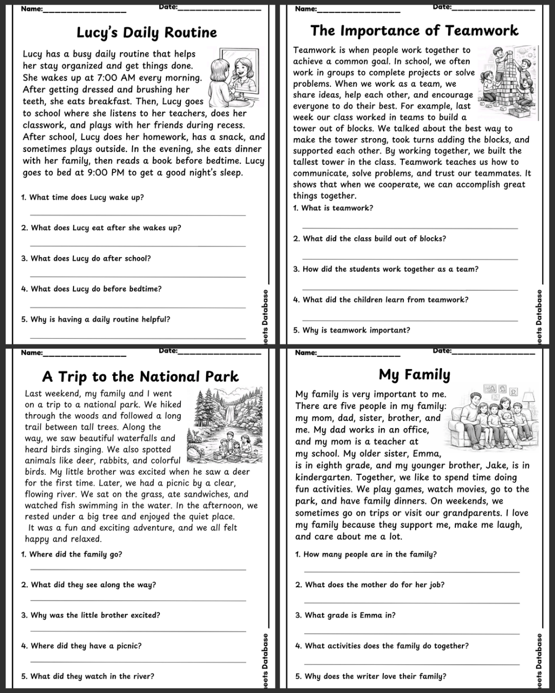 Make reading fun and engaging for your students with this carefully designed set of Grade 4 Reading Comprehension Worksheets. Each worksheet includes a short, clear passage followed by comprehension questions to help students improve their reading and understanding skills.