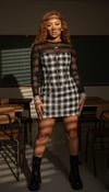• Plaid skirts, corset dresses, fitted knits, boots & heels