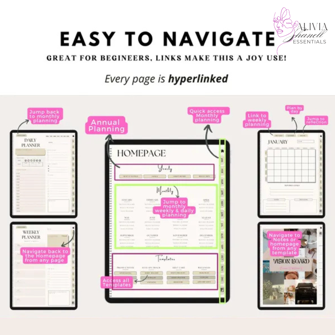Hyperlinked Navigation: Easy-to-use, fully linked pages make planning seamless and efficient.