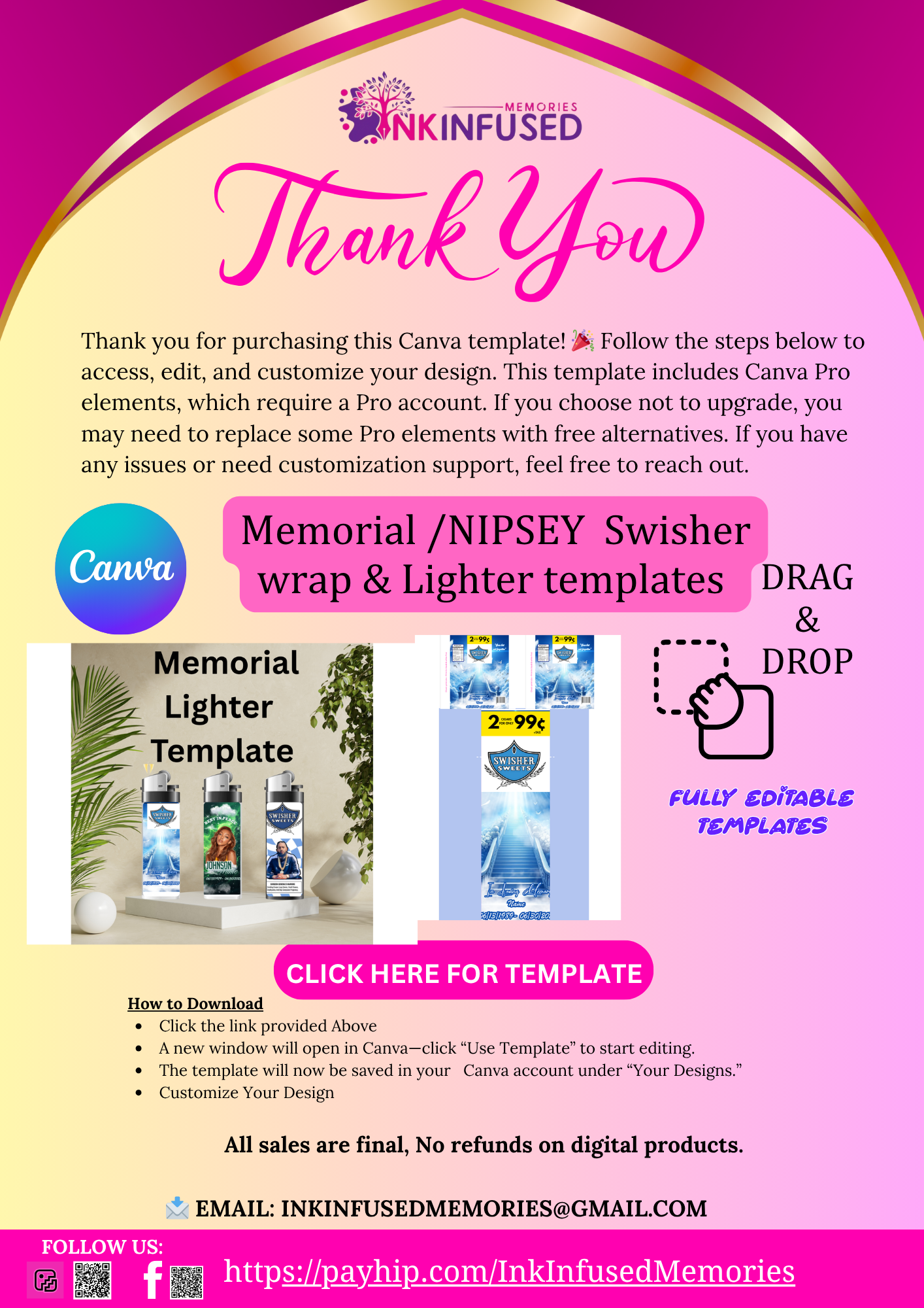 You will receive aĀ PDF fileĀ with a link to download yourĀ ZIP folderĀ containing all the templates.