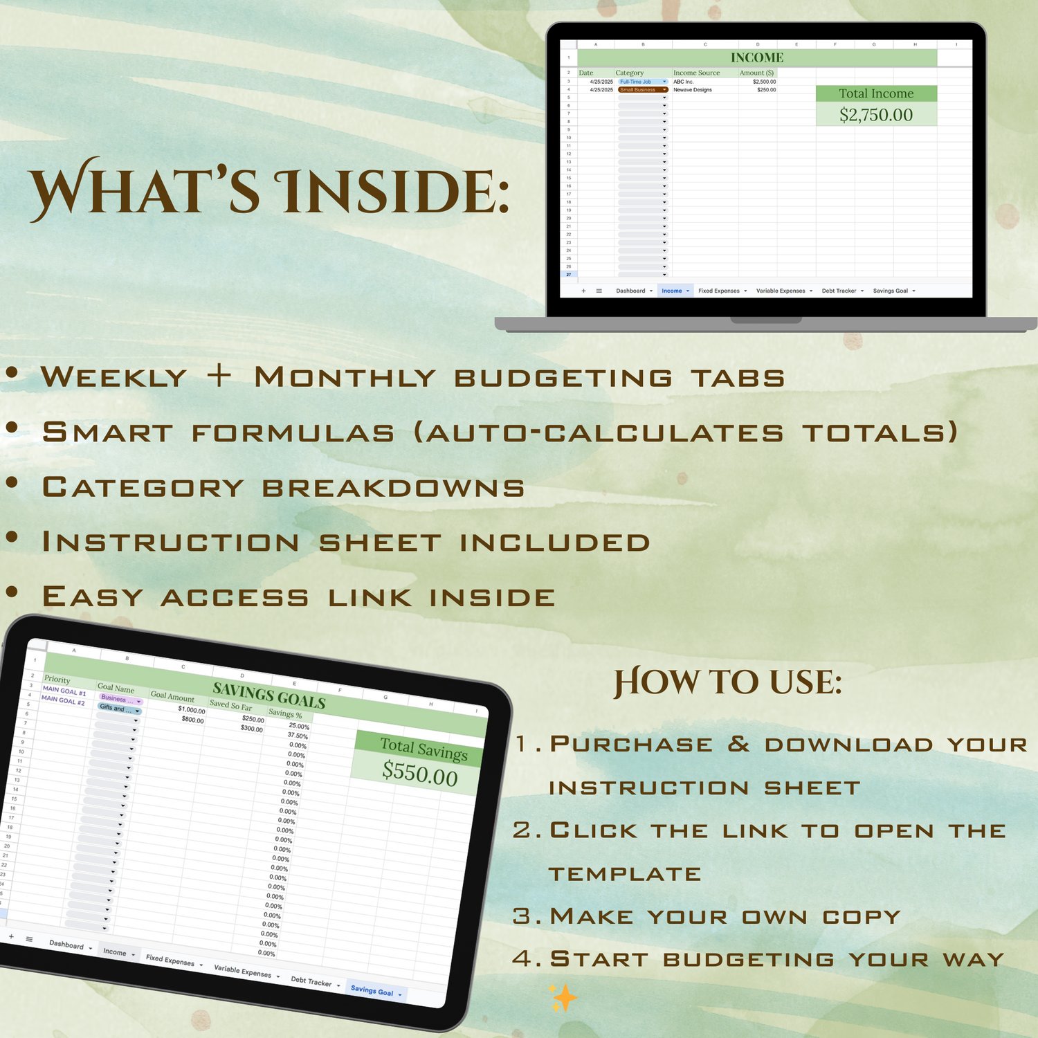 Google Sheets Budget Planner 2025 | Monthly + Weekly Budget Template | Digital Finance Spreadsheet
