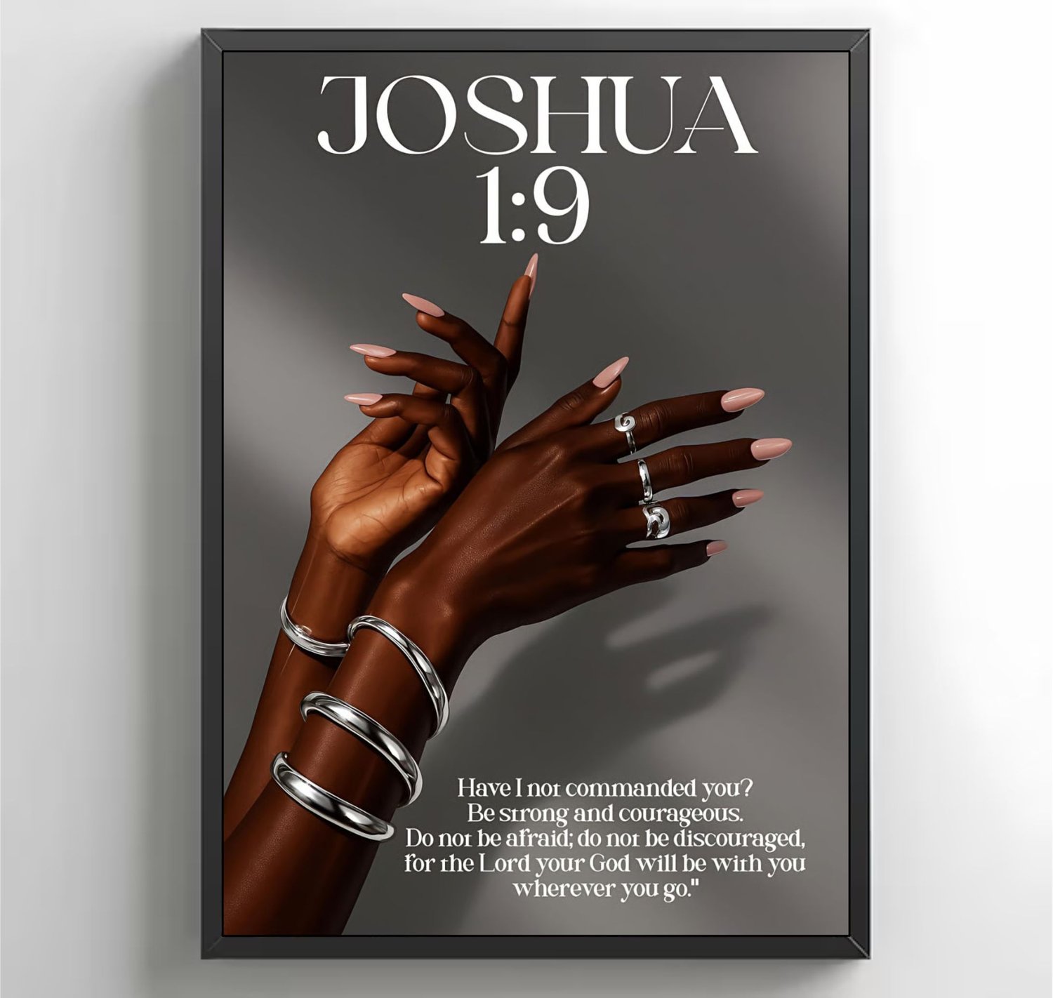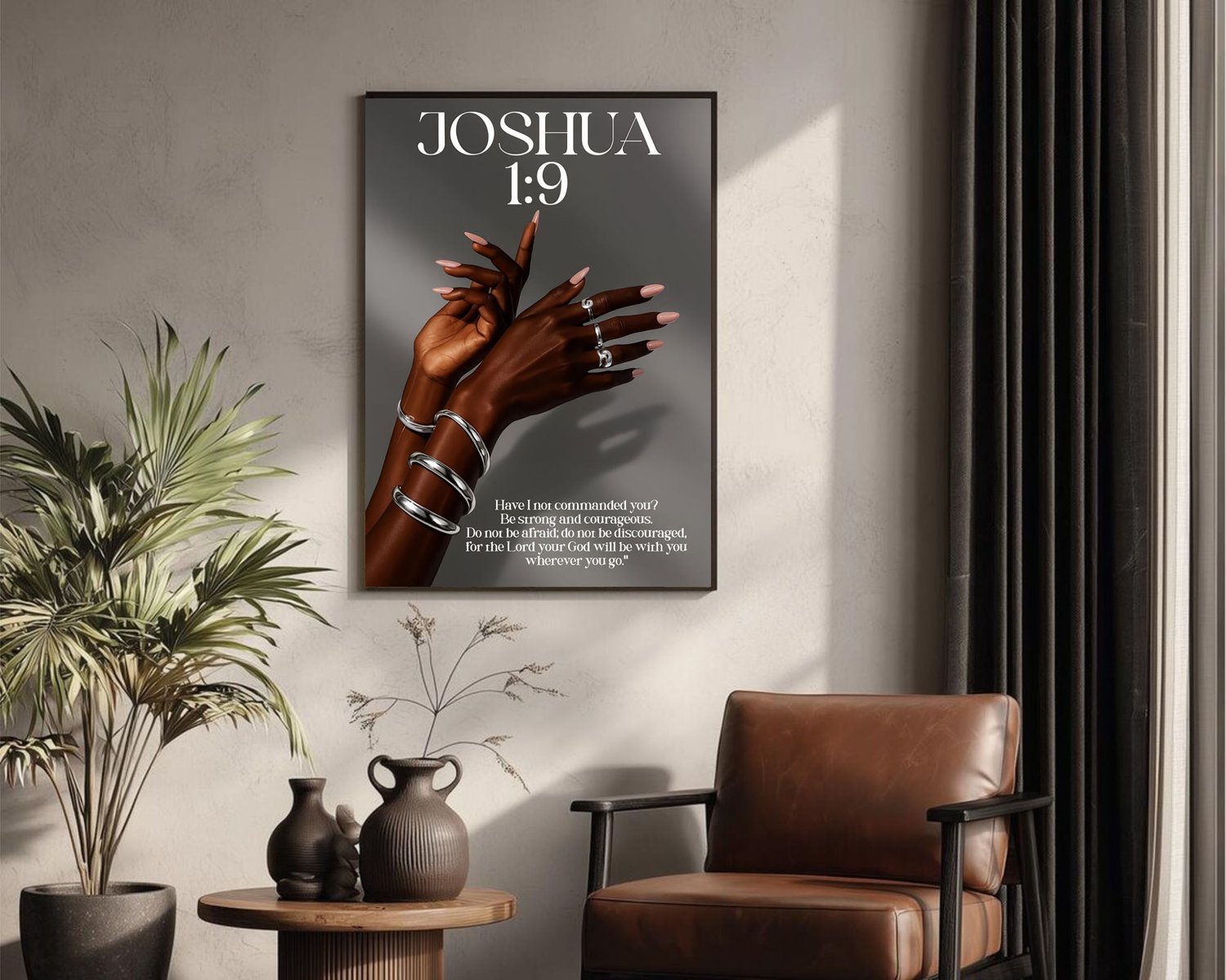 Bring bold faith into your home with this beautifully designed Joshua 1:9 digital wall art. More than just décor, this piece is a daily reminder of God’s command and comfort: