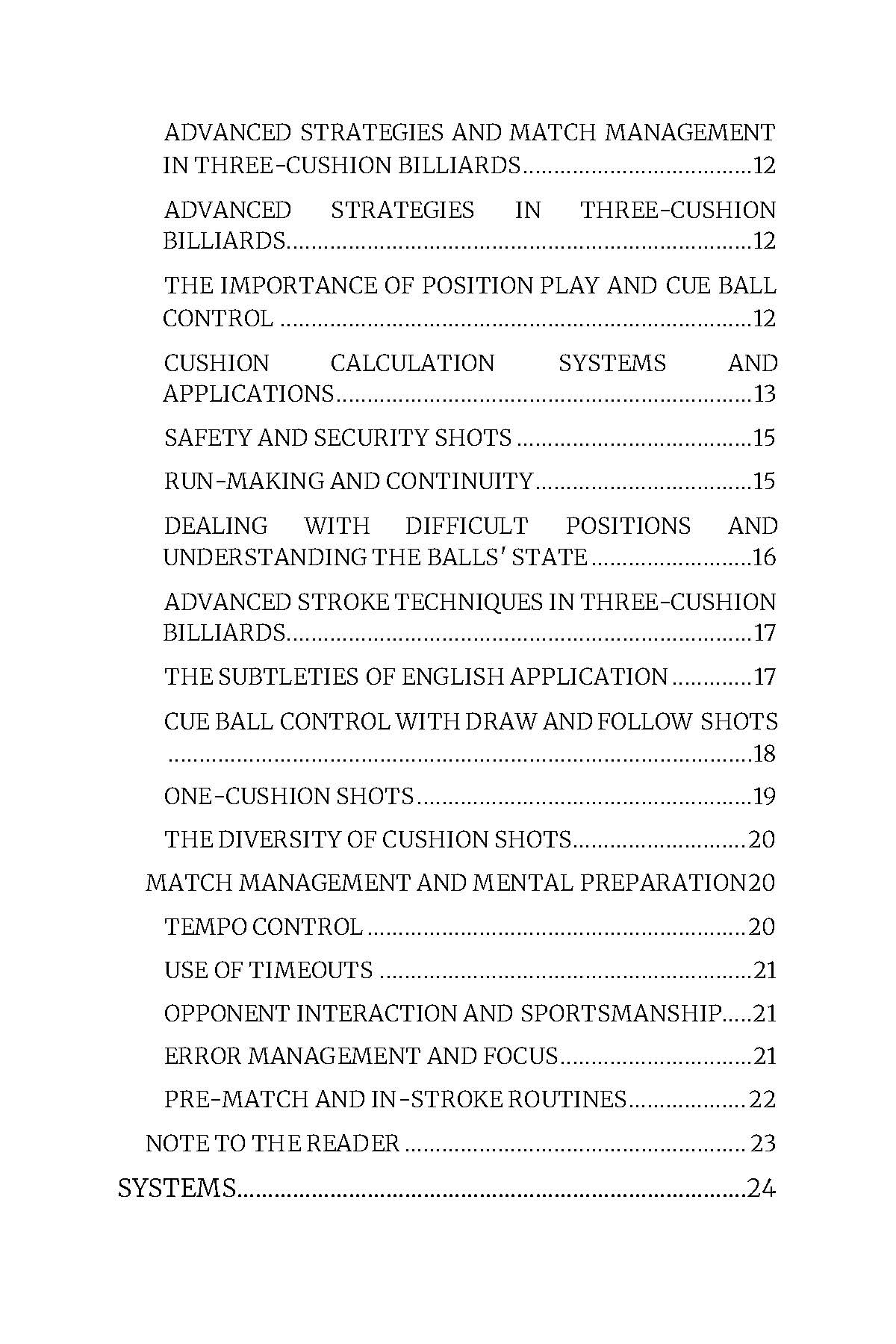 Mastery in three-cushion billiards is built not only on the table, but on the practice table, in the mind, and through patience. This book was written for players who want to systematically improve their performance.