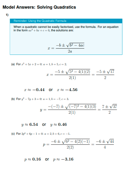 IGCSE Extended Level Maths: Non-Factorisable Quadratics (Worksheet & Model Answers)