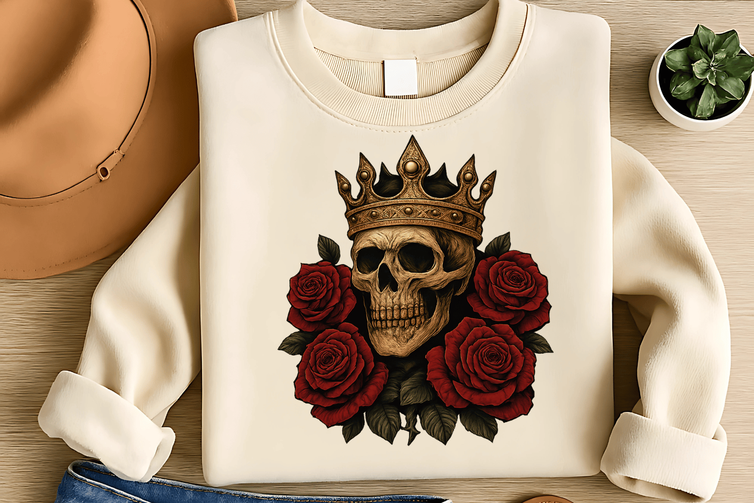 Rule Halloween with elegance using this Skeleton King of Roses Sublimation PNG! Showcasing a crowned skeleton surrounded by dark, romantic roses, this design fuses royal power with gothic beauty. Perfect for apparel, gifts, and décor, it’s an enchanting choice for those who love a refined yet spooky Halloween aesthetic.