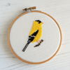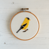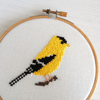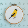 Familiar across much of North America, this bright yellow finch can often be seen in flocks feasting on seeds. Part of my easy-to-stitch small bird series of designs. See my Bird Pattern section to see more.