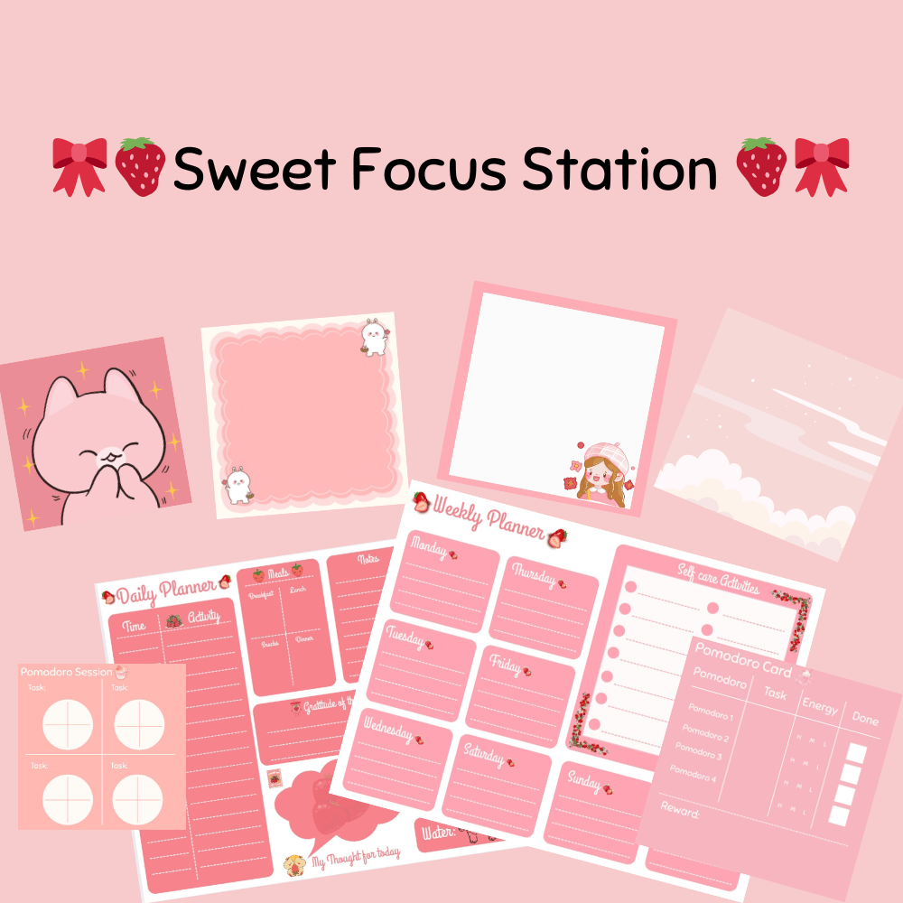 The Sweet Focus Station is your all-in-one planning collection created for students, creators, and anyone who loves organizing life with aesthetic stationery.