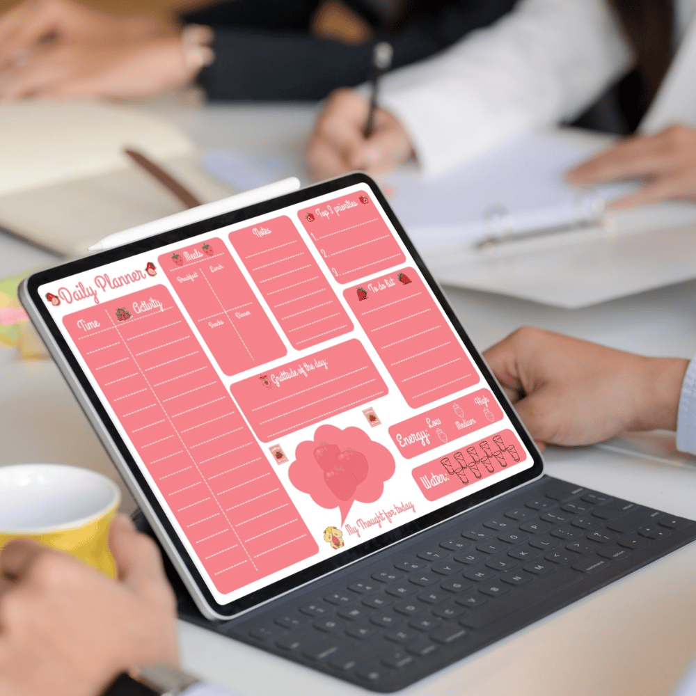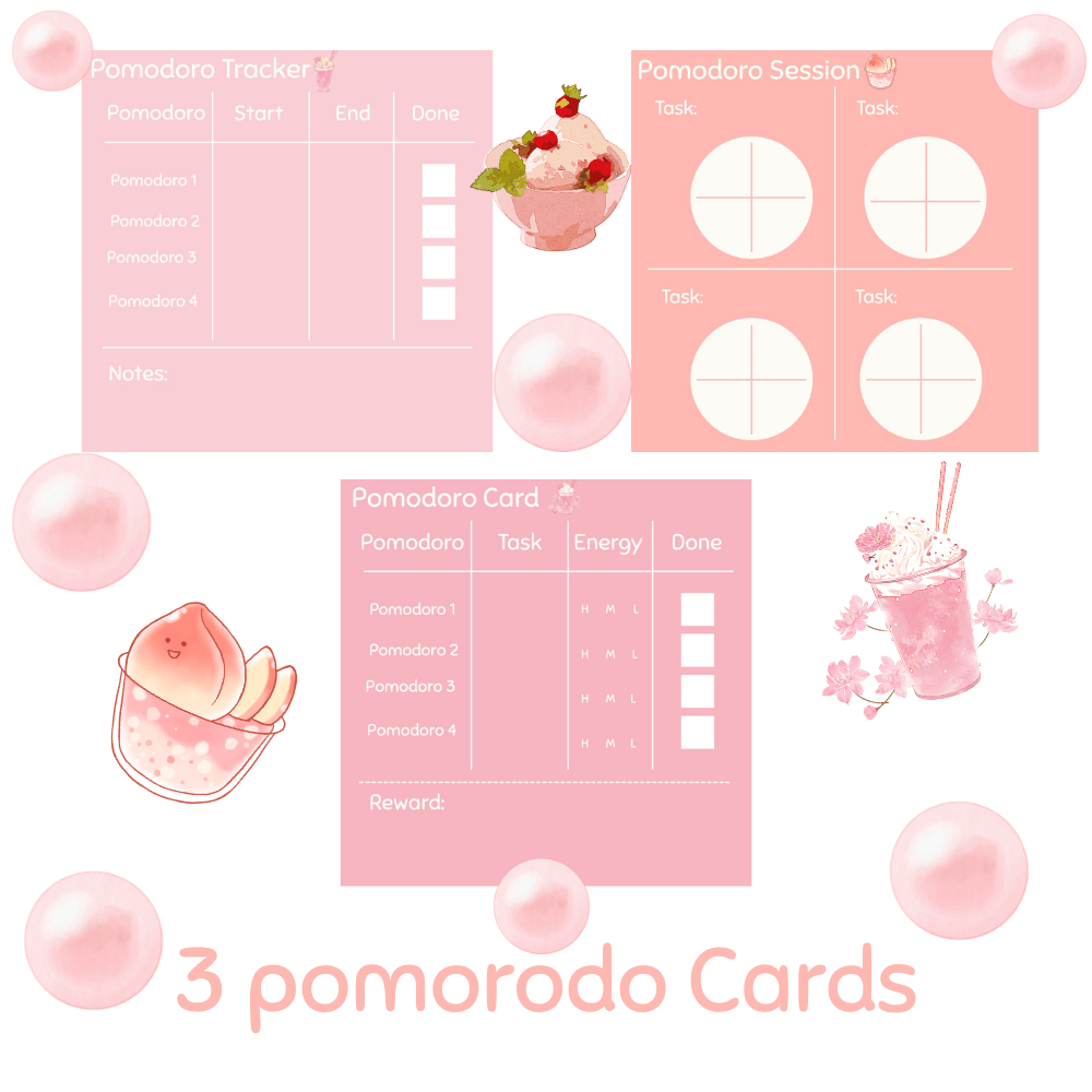 A complete digital planning bundle designed to help you stay organized, productive, and inspired — all in a soft pink as well as strawberry aesthetic. This set includes planners, memo pads, and pomodoro cards, perfect for daily and weekly productivity.