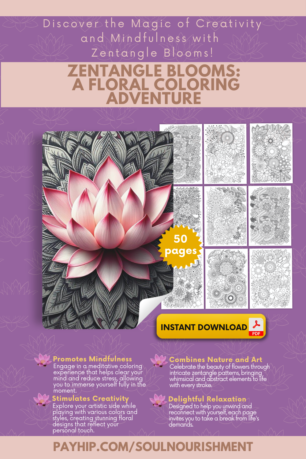 Introducing Zentangle Blooms, a digital coloring book that merges the elegance of floral designs with the calming practice of Zentangle art. Each page invites you to enter a peaceful state of mind, as you fill each blossom with vibrant colors and unique patterns.