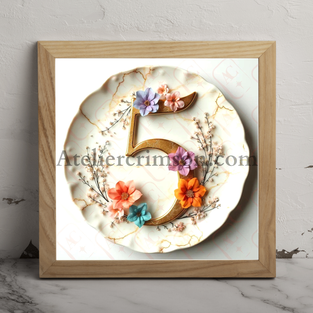 Number 5 flowers and procelaine .Download Now this high quality AI-generated image, perfect for adding a touch of tranquility and creativity to any space.