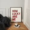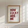How Lucky Are We Wall Art Print – Minimal Typography Poster, Burgundy Quote Art, Modern Printable Wall Decor (24x36 Digital Download)