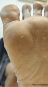 and will proceed to rub her feet against each other, creating a lot of foot dust and bits of dead skin
