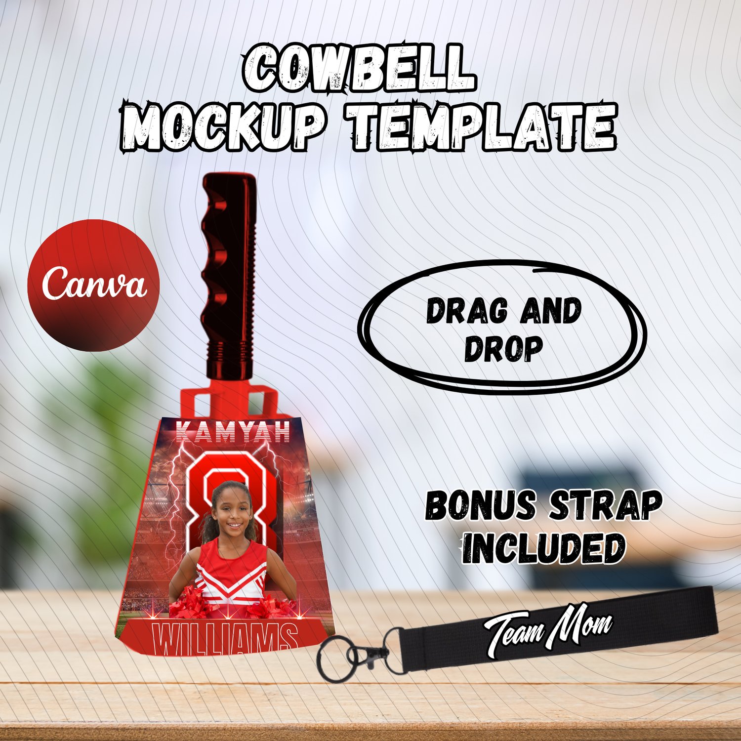 Cowbell Mockup Template – Drag & Drop | Any Sport | 3 Sizes Included | Canva Compatible