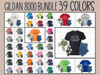 Gildan 8000 shirt bundle mockup 39 popular colors unisex t-shirt bundles mock ups Gildan 8000 blank flat lay mockups essential jpg download
