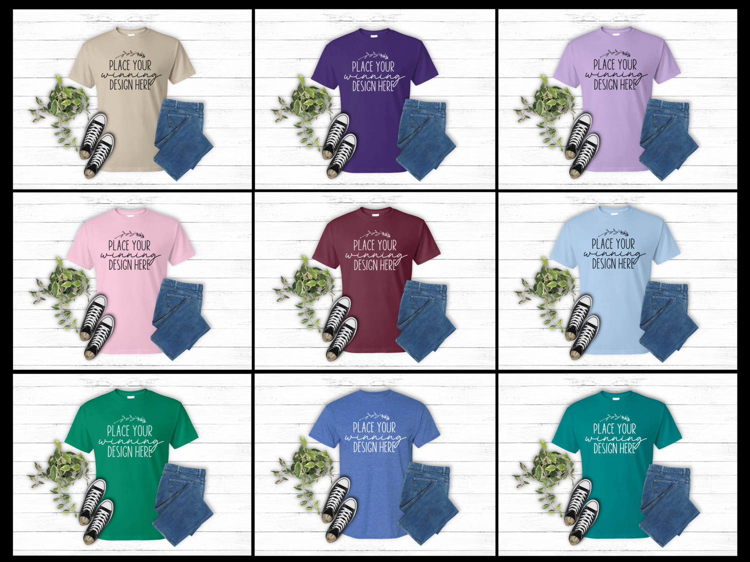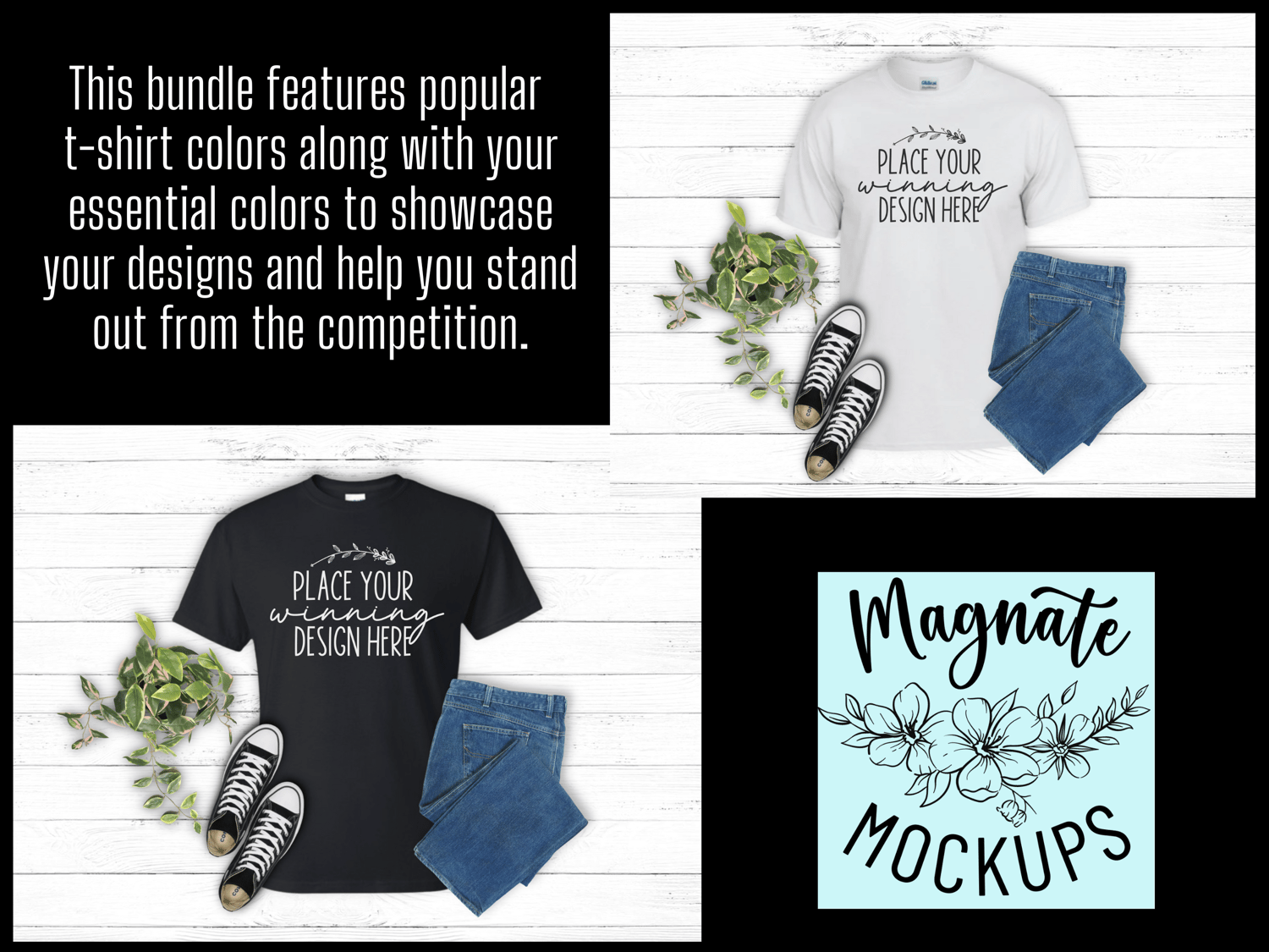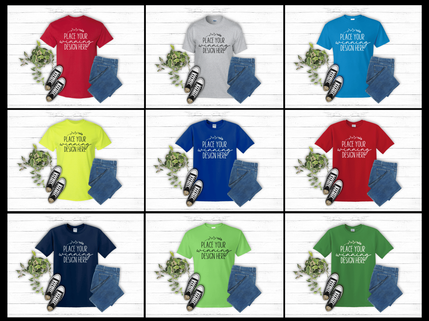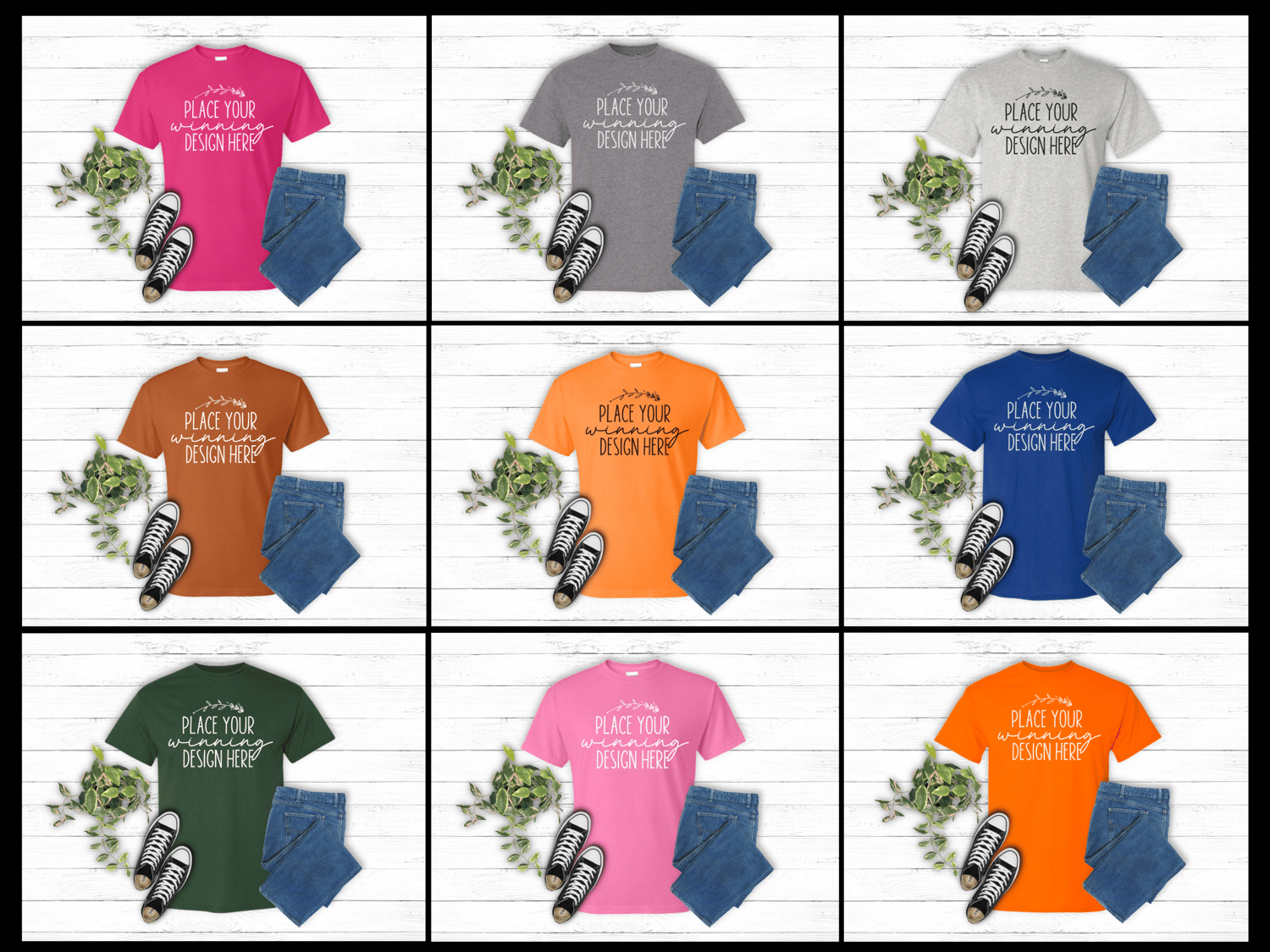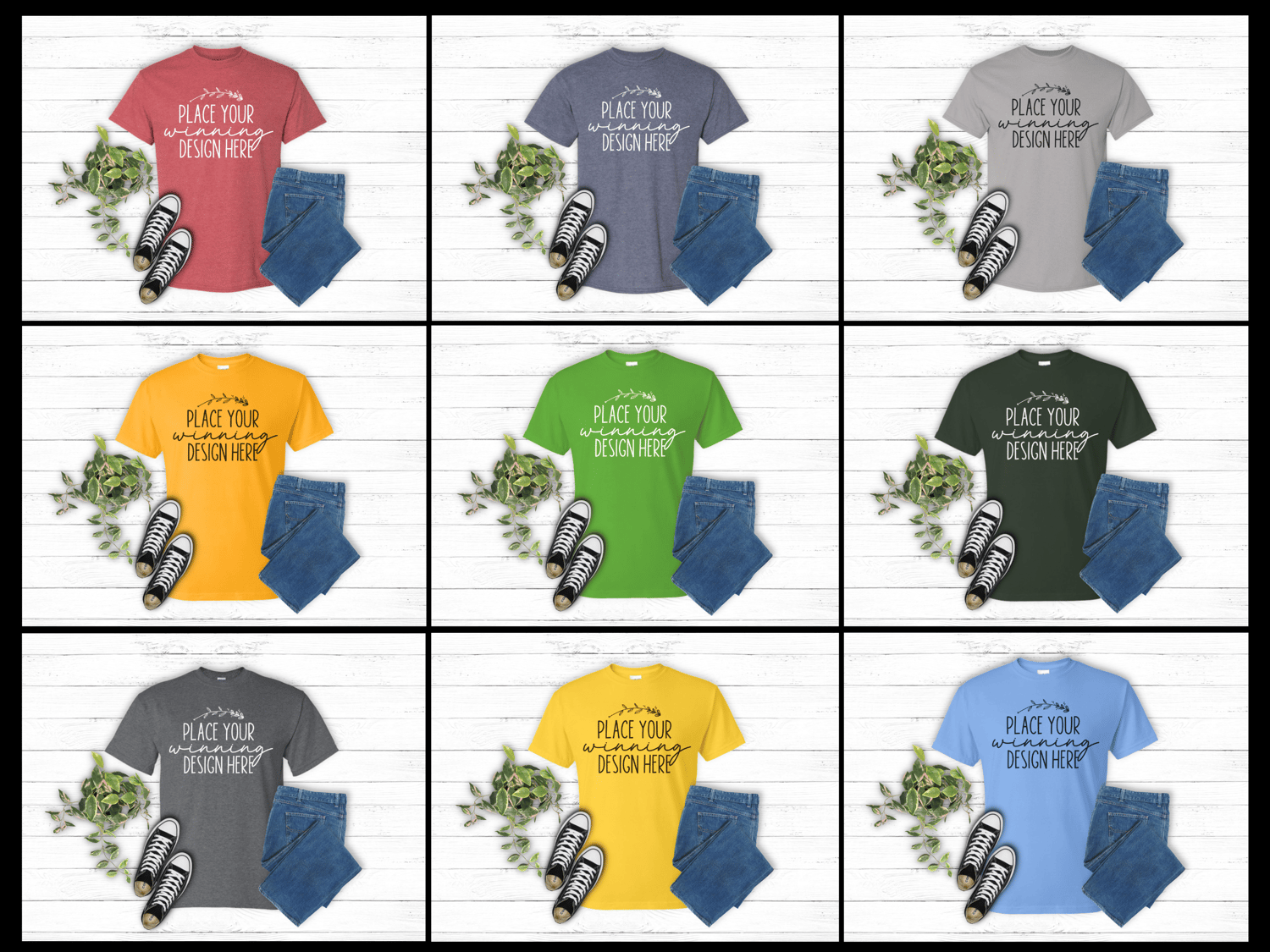 - This listing includes 39 x Gildan 8000 flat lay mockup lifestyle images featuring the front and back of each shirt to help you appeal to even more potential customers.