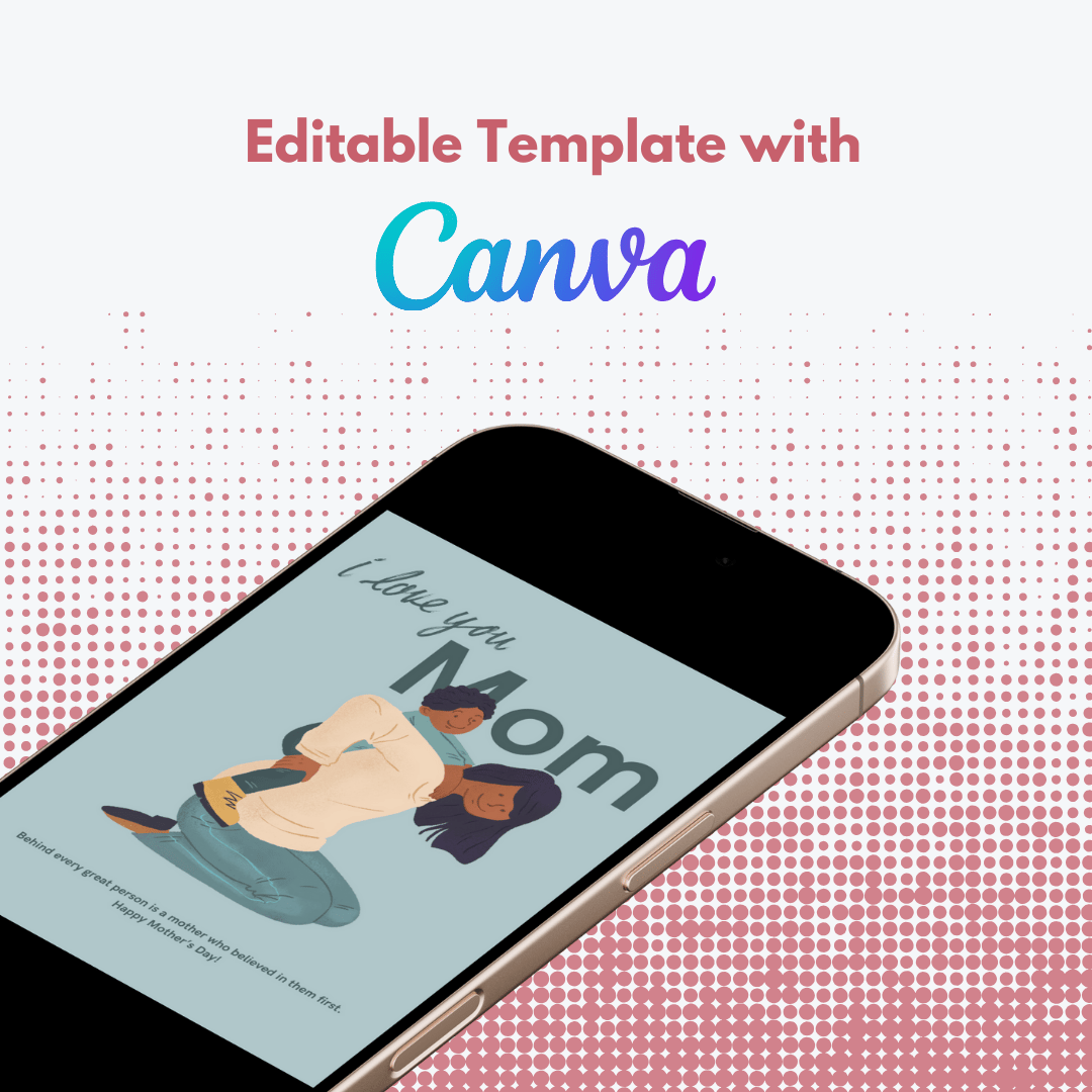 Featuring a beautiful illustration of a mom and son, this printable and downloadable Canva template is perfect for sons and family members looking for a heartfelt way to say Happy Mother’s Day.