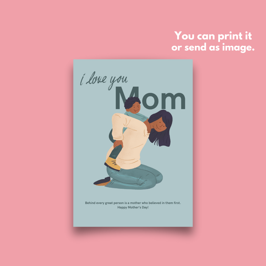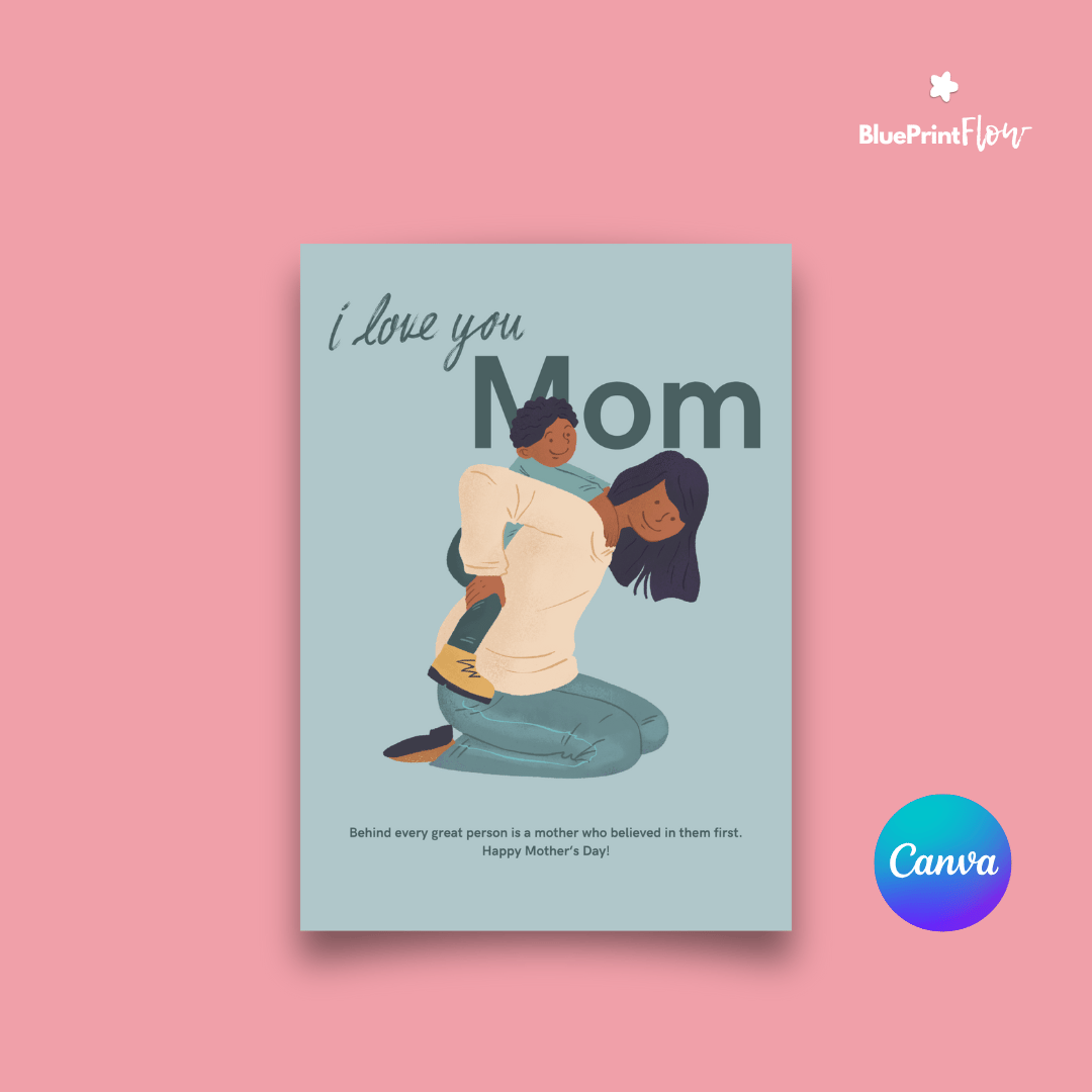 Mom and Son Blue I love you Mother's Day Card Celebration Canva Template Design
