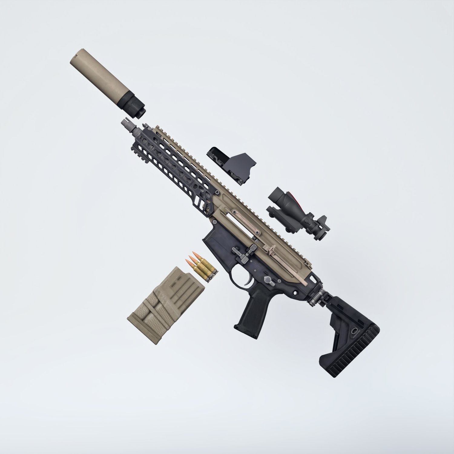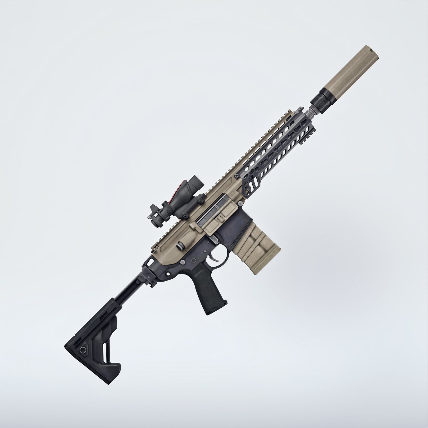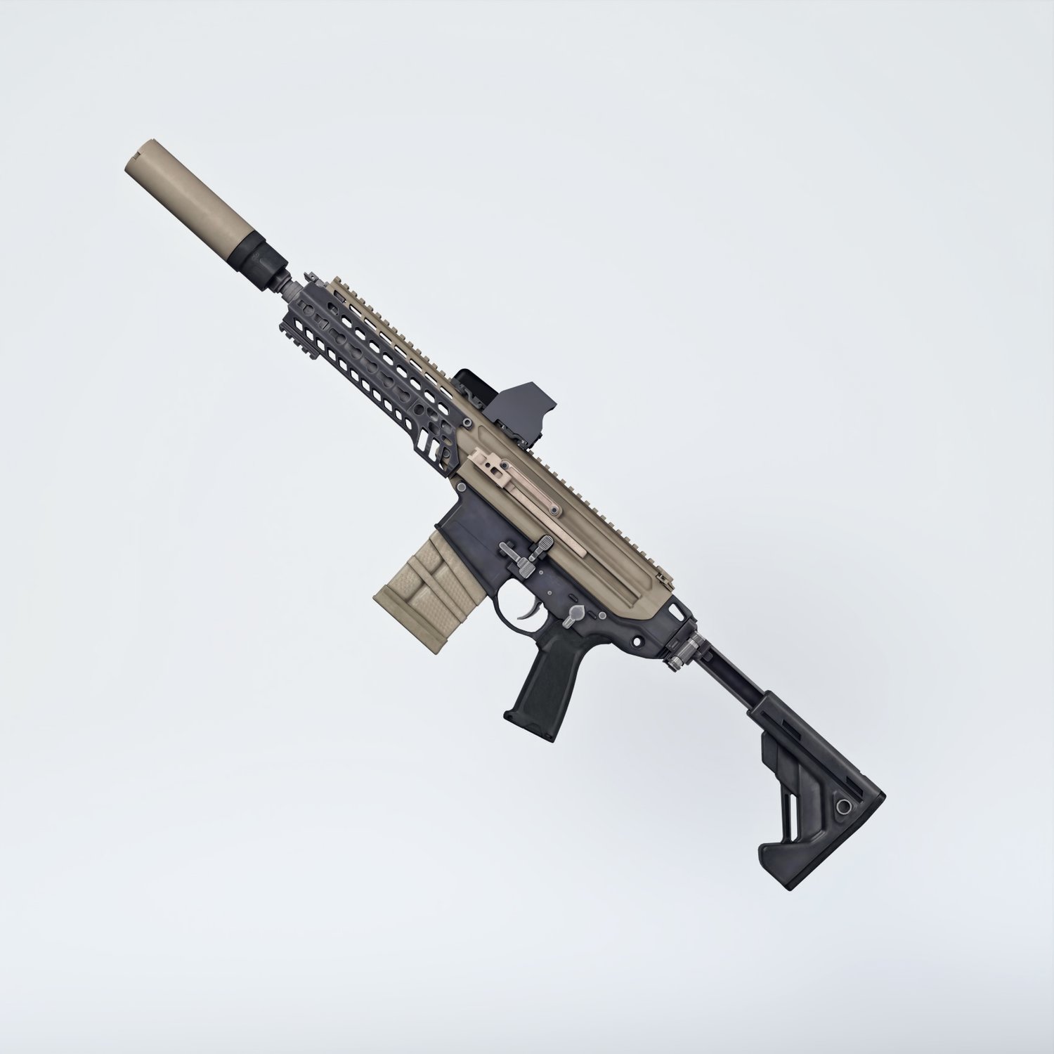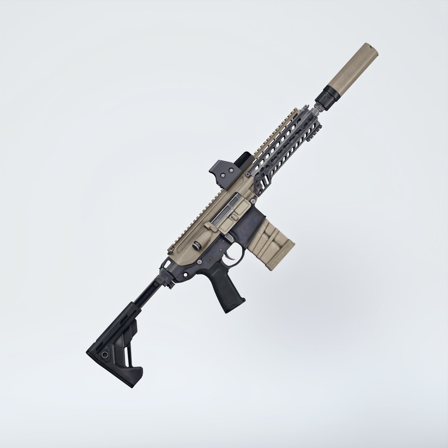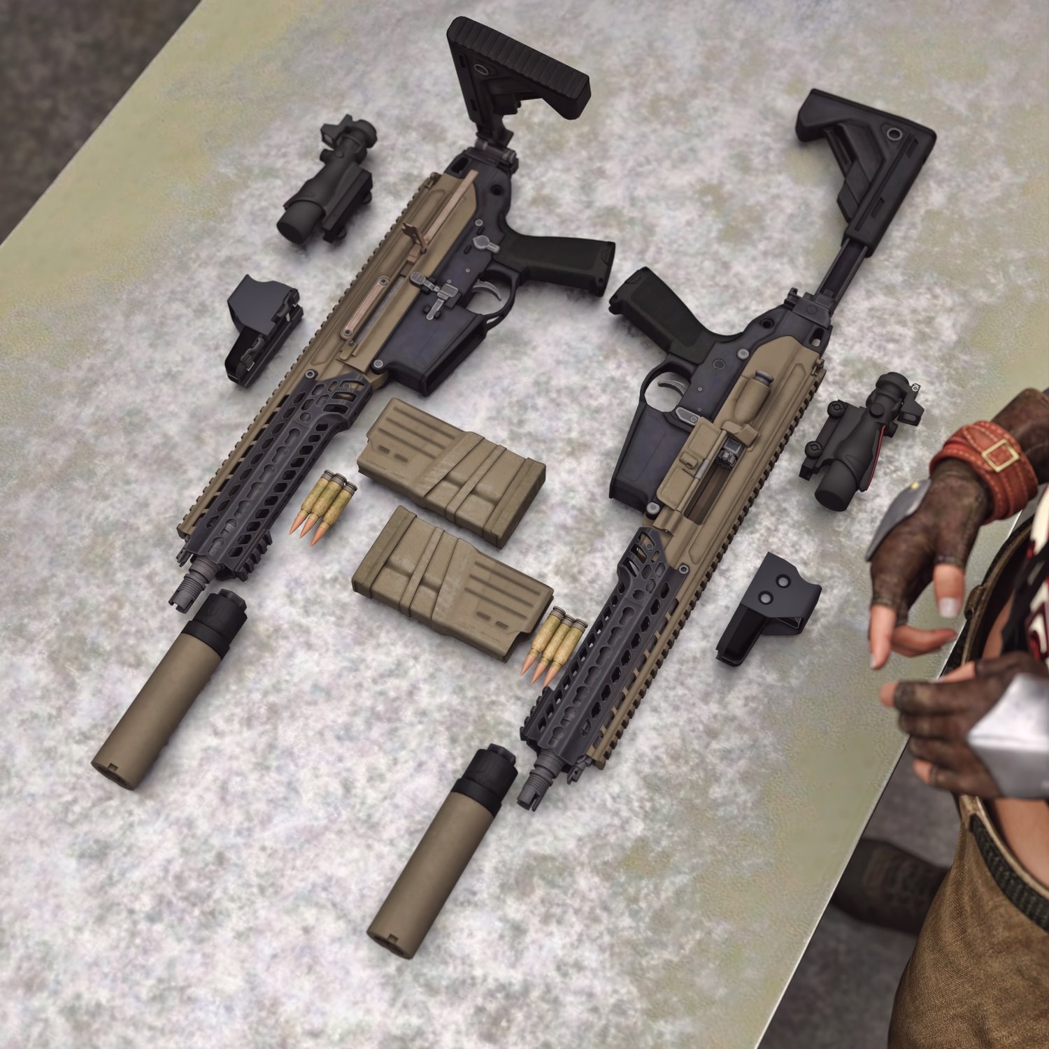 A variant of a cool new american assault rifle, chambered in 6.8 caliber. Converted and rigged for use with DAZ. Trigger, safety, bolt, stock, etc also rigged for more realistic pictures. Includes an optic sight, red dot sight and a silencer, for various porpoises and pictures. Has plenty of rails to mount any attachments you might have. Stock folds and extends for comfortable use.