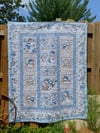 The cover quilt uses a panel with three sizes of pictures. You can use medium to large scale prints in place of the panel pictures. If the pictures in your panel aren’t the same size as in the pattern, you can adjust the size of the framing and/or sashing strips.