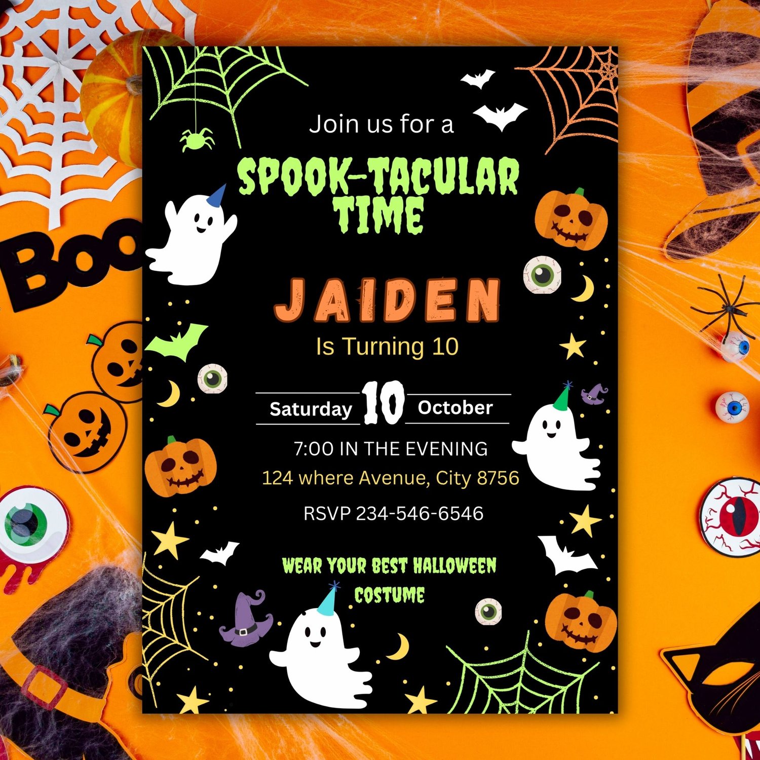 Editable Halloween Birthday Invitation | Spooky Party Invite | Pumpkin Ghost Bat Birthday Template | Instant Download