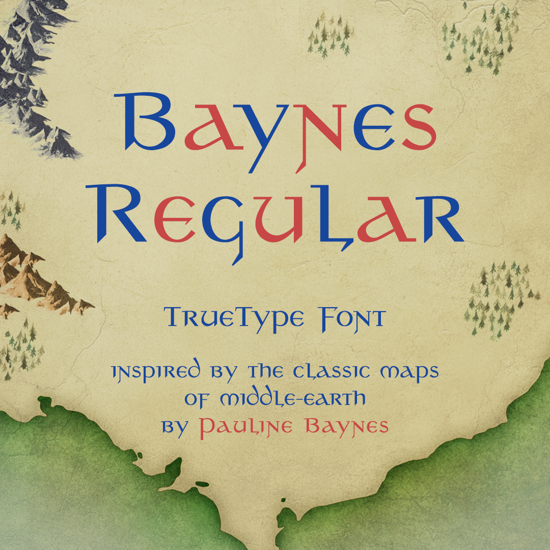 Baynes Regular & Baynes Bold are TrueType fonts, inspired by the classic maps of Middle-earth by Pauline Paynes.