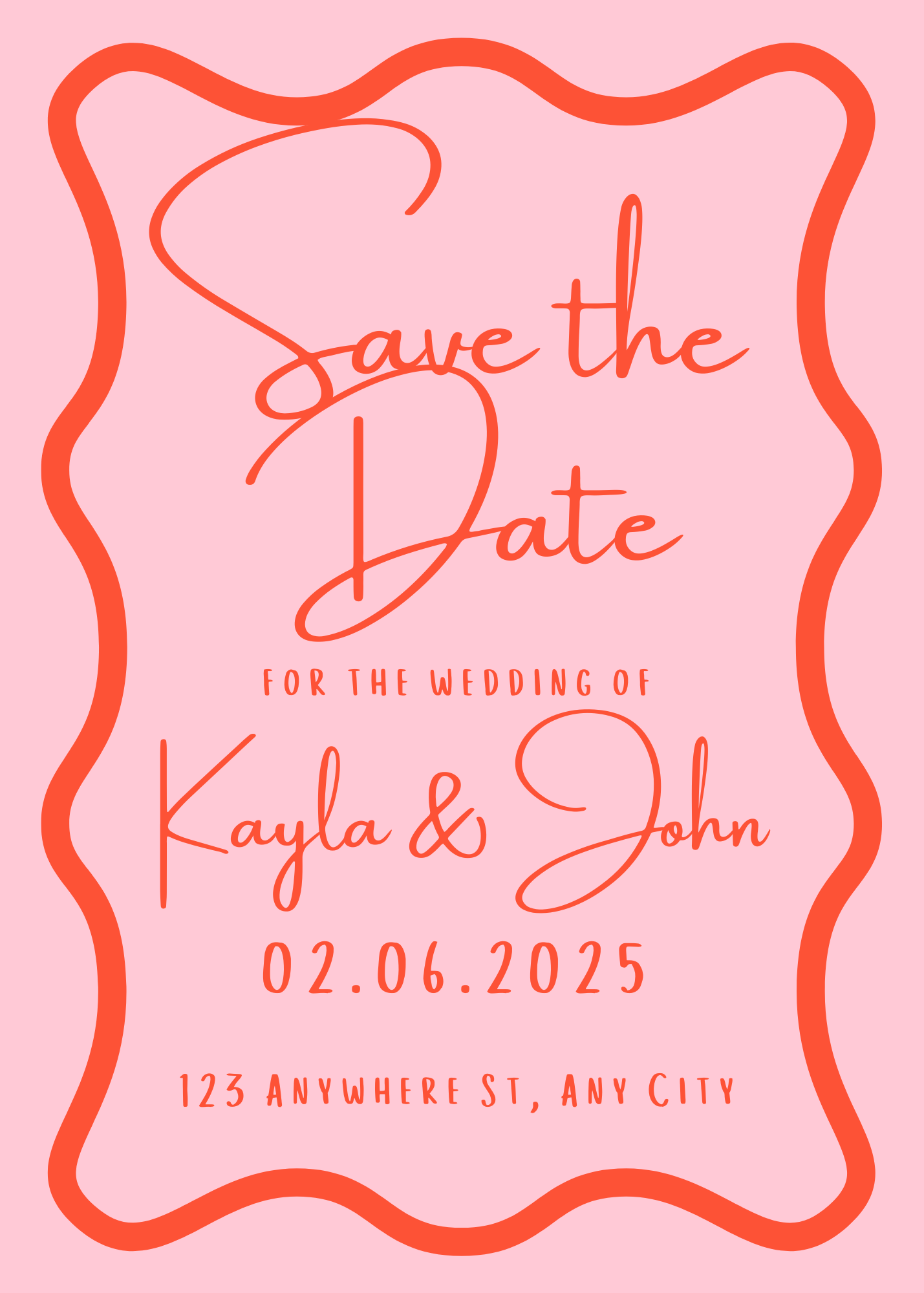 Stand out from the crowd with this eye-catching Save the Date card. Features a fun, wavy red frame and clean text layout.