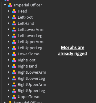 All morphs come fully rigged and ready to use, ensuring seamless integration into your Roblox experience, whether for a game, roleplay group, or cinematic showcase. Built with precision and performance in mind, this pack delivers both high-quality visuals and plug-and-play functionality, saving you hours of setup time.