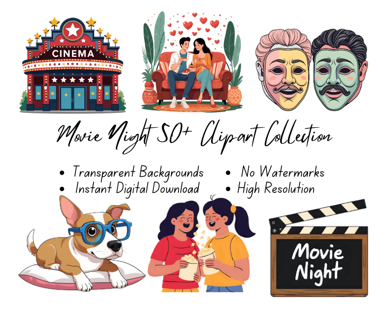 50+ Movie Night Clipart Collection | High-Resolution | Instant Digital Download | No Watermark
