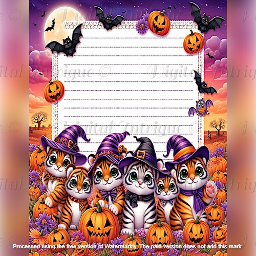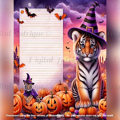 Unleash the charm of Halloween with this enchanting bundle of tiger-themed digital goodies! Featuring a delightful mix of digital prints and printable writing papers, each piece showcases adorably spooky tigers in festive costumes, moonlit forests, and pumpkin patches. Perfect for scrapbooking, journaling, party invites, or adding a touch of wild whimsy to your seasonal crafts.
