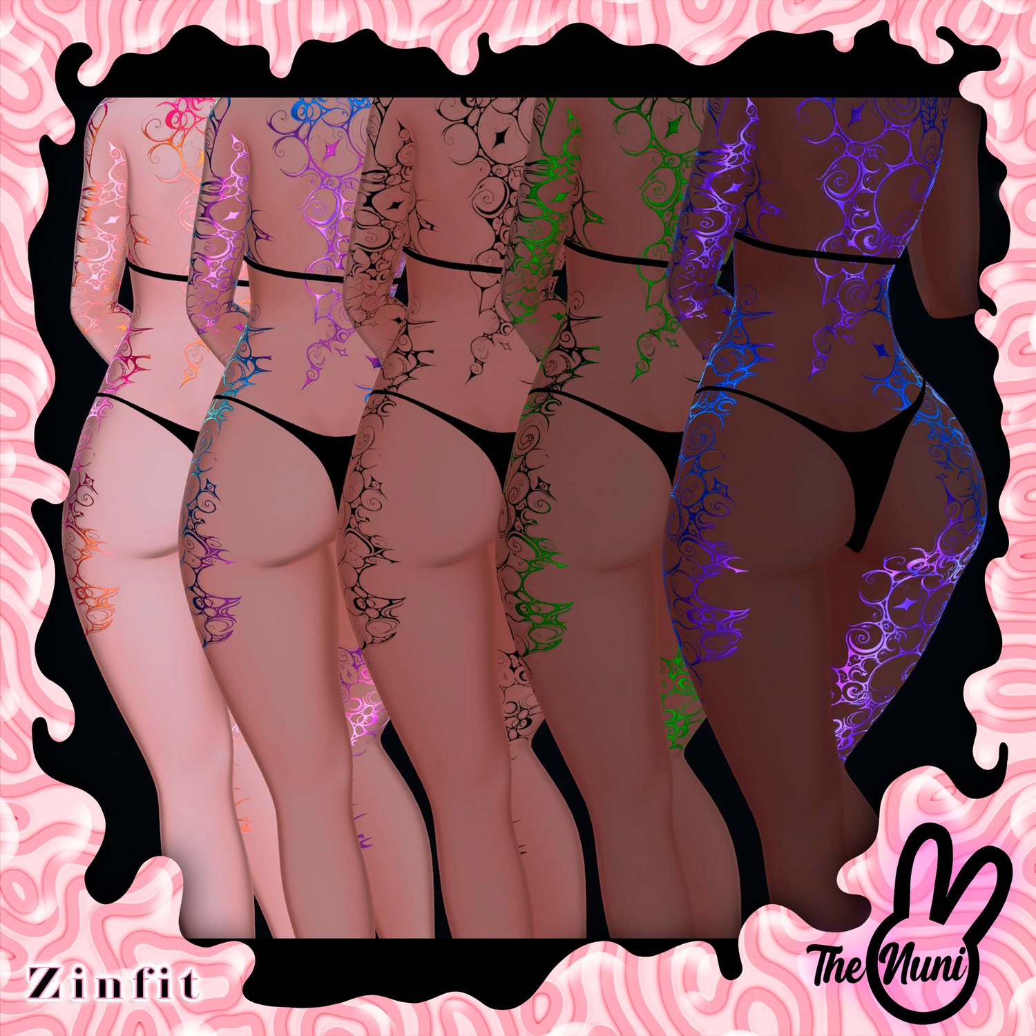 For the Zinfit base: 5 celestial tattoo texture w. different skintones,