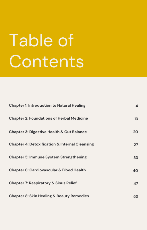 Pure Remedies and Natural Healing combines traditional herbal knowledge with modern wellness practices. Every chapter is designed to be practical, easy to understand, and usable for beginners and experienced readers alike. The focus is on real remedies, real ingredients, and real results.