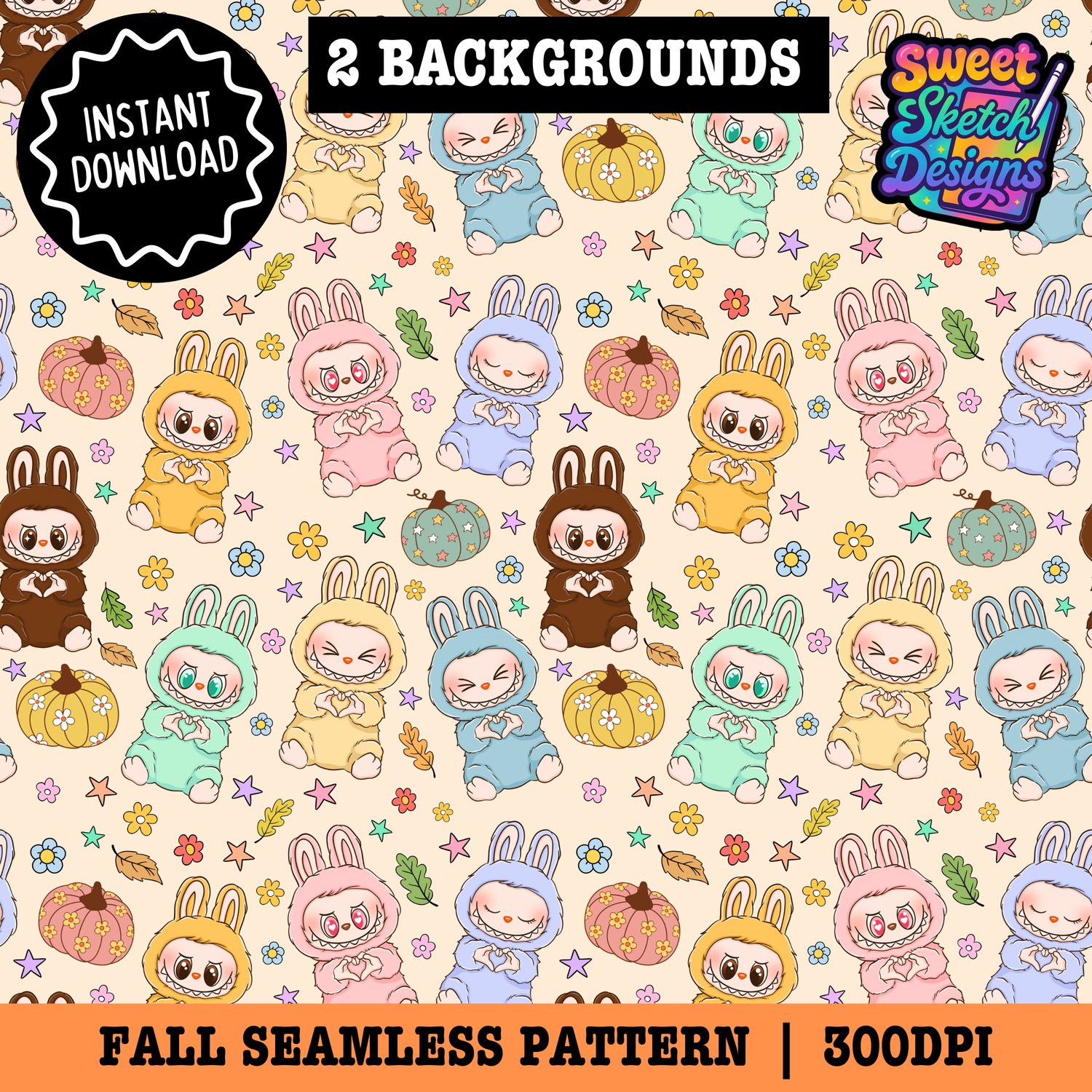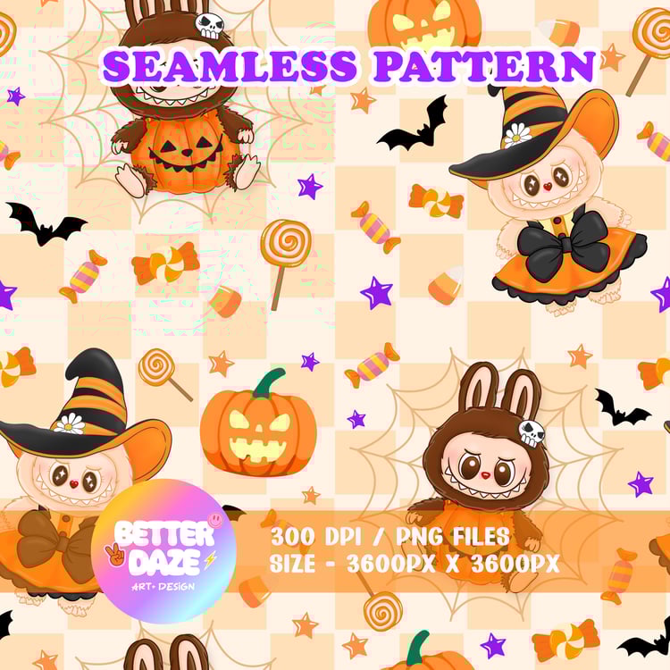 Fall Vibes Labubu Seamless Pattern