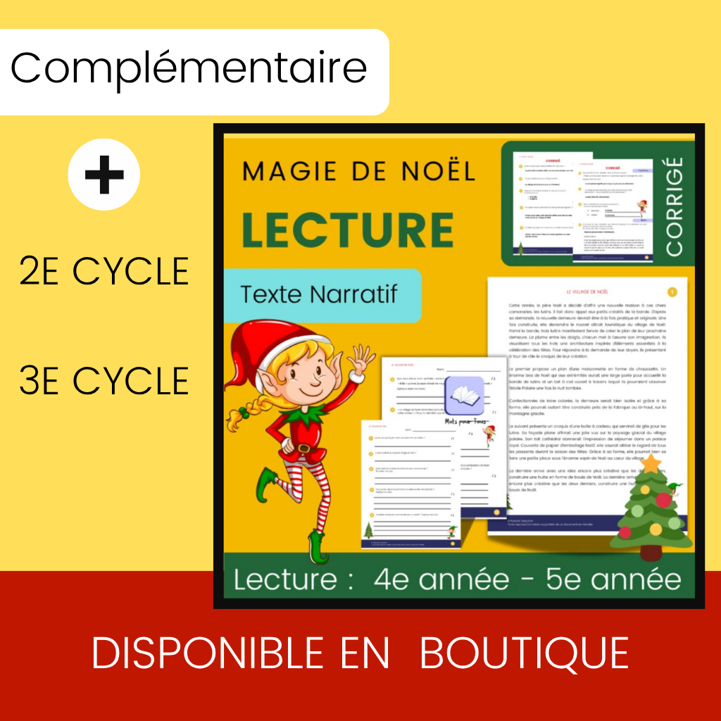 Idéale pour le 2e et 3e cycle du primaire, cette ressource s’intègre facilement à vos ateliers d’écriture, plans de travail, projets de Noël ou évaluations formatives.