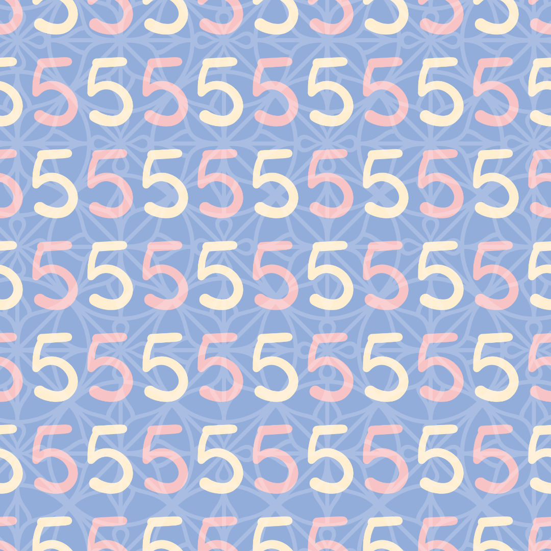 Cute digit number five seamless vector pattern. Numerical lettering seamless illustration background.