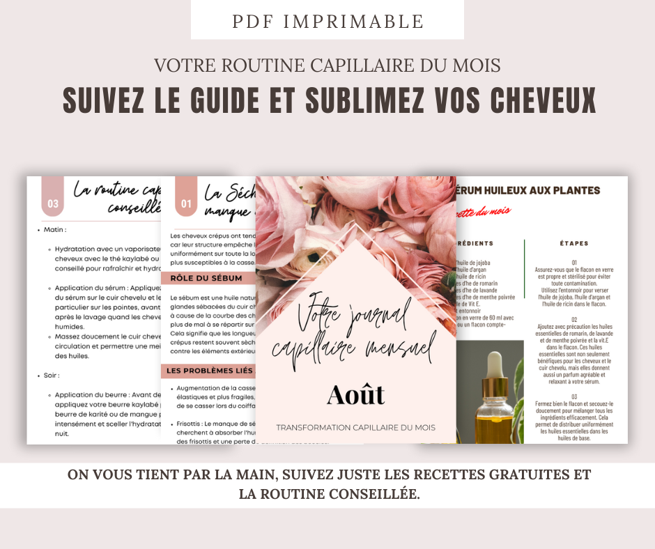 Notre journal capillaire du mois d'août avec des conseils experts, des solutions ciblées et des recettes maison pour répondre spécifiquement aux défis uniques que rencontrent les cheveux crépus.