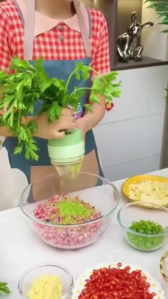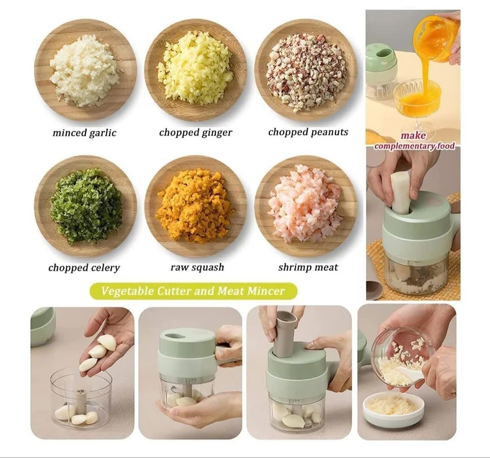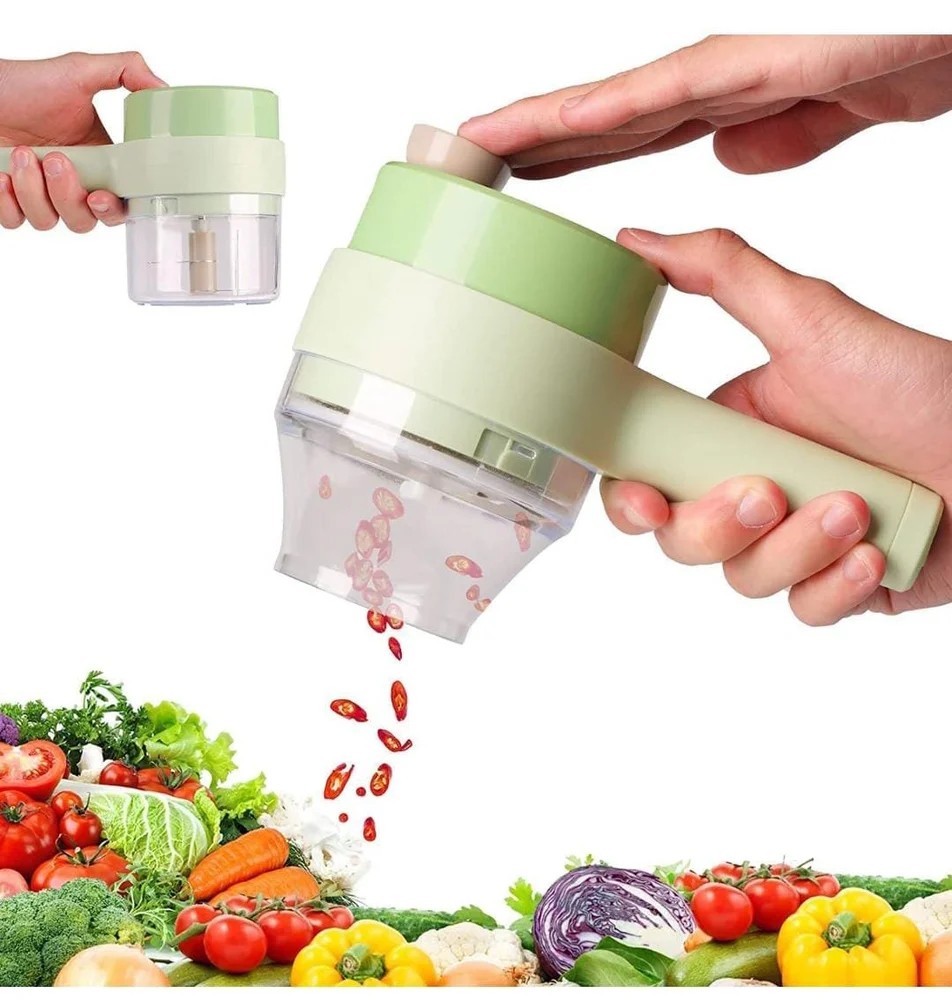 Make your kitchen work faster and easier with this 4-in-1 electric vegetable cutter. Whether you're slicing, grinding garlic, peeling, or even cleaning — this compact tool does it all.
