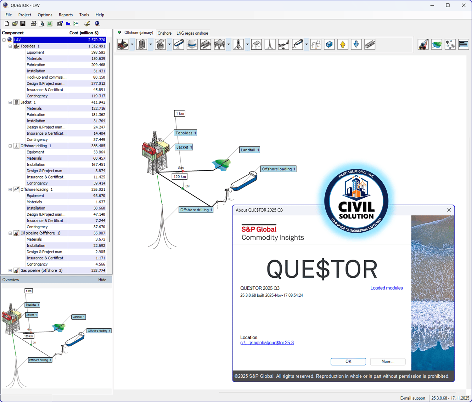 🛠️ S&P Global QUE$TOR 2025 Q3 is a comprehensive oil and gas cost estimation and project decision support software designed for upstream field development. It offers concept screening, optimization, and detailed CAPEX/OPEX cost estimates to help users make informed decisions early in the project lifecycle. The software includes multiple modules for offshore, onshore, and LNG regasification projects, leveraging extensive cost databases updated biannually with global market intelligence.