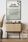 Health Affirmations Printable — Sage Green Botanical Wellness Wall Art, Mindfulness Decor, Instant Digital Download (PNG, 7 Sizes)