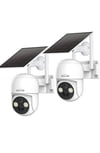 WOOLINK 2PCS 4MP Solar Security Camera Wireless Outdoor, 2.5K Solar/Battery Powered Camera for Home Security, Pan/Tilt 2.4GHz WiFi Camera with PIR, 2-Way Audio, Cloud/SD, Color Night Vision