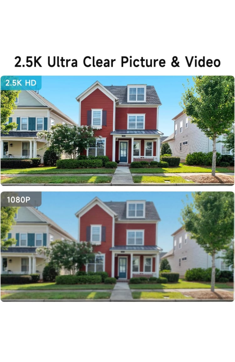 - 4MP 2;5K HD image resolution for clear visuals and full color night vision with infrared light and spotlight