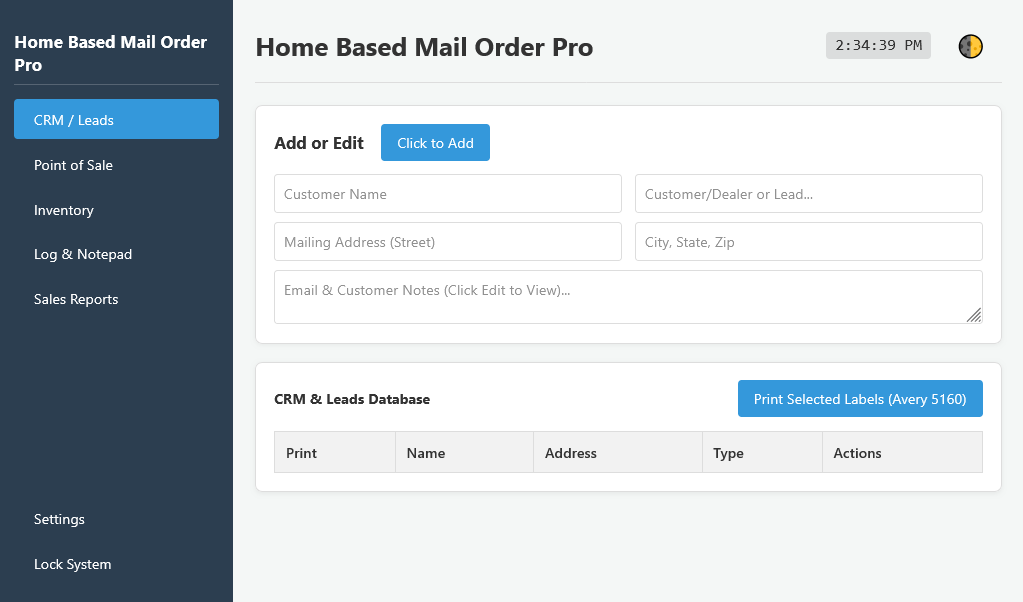 Home Based Mail Order Pro is a powerful, all-in-one desktop system built specifically for home-based entrepreneurs who sell by mail. It gives you everything you need to manage customers, inventory, and sales—without complicated setups, monthly subscriptions, or internet dependence.