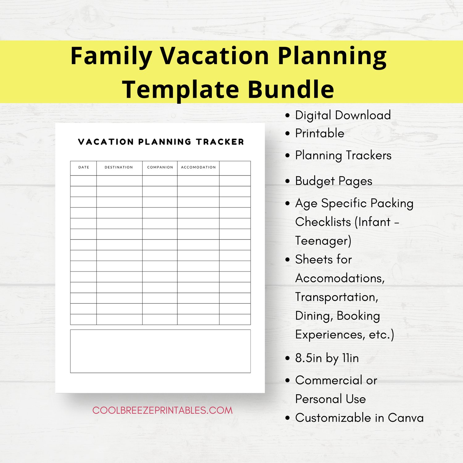 Help your customers (or yourself) plan the ultimate family vacation with this Canva Template Bundle!