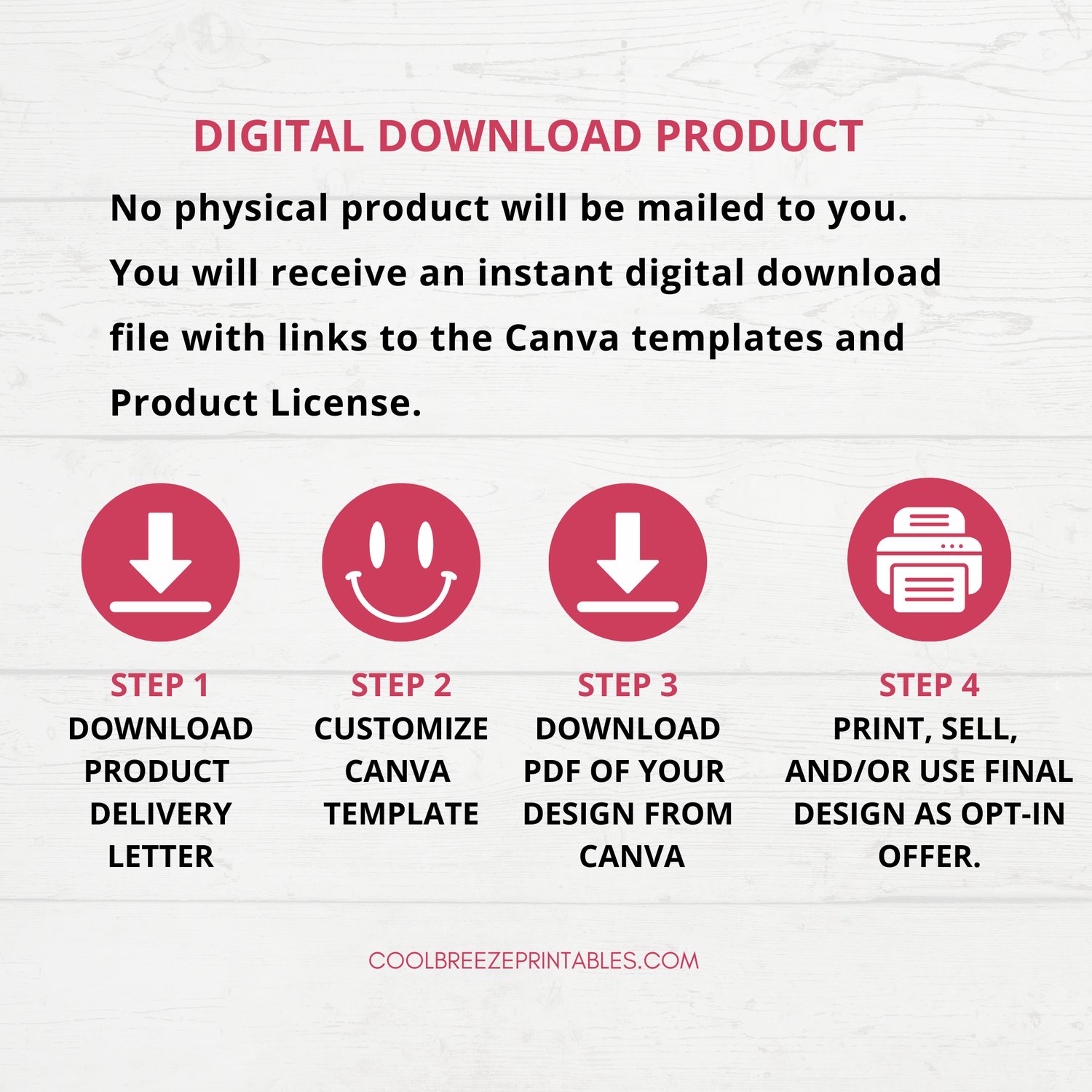 You will receive a Delivery Letter (PDF File) that has all the Canva Template Links along with instructions on how to get the templates in Canva and a link to the commercial-use license.