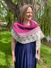 The end result is a large, cozy shawl that encompasses the beauty and sanctuary of a peaceful summer garden.