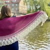 Measurements – The finished, blocked shawl has a wingspan of 63” (160cm) and a depth of 18.5” (47cm)