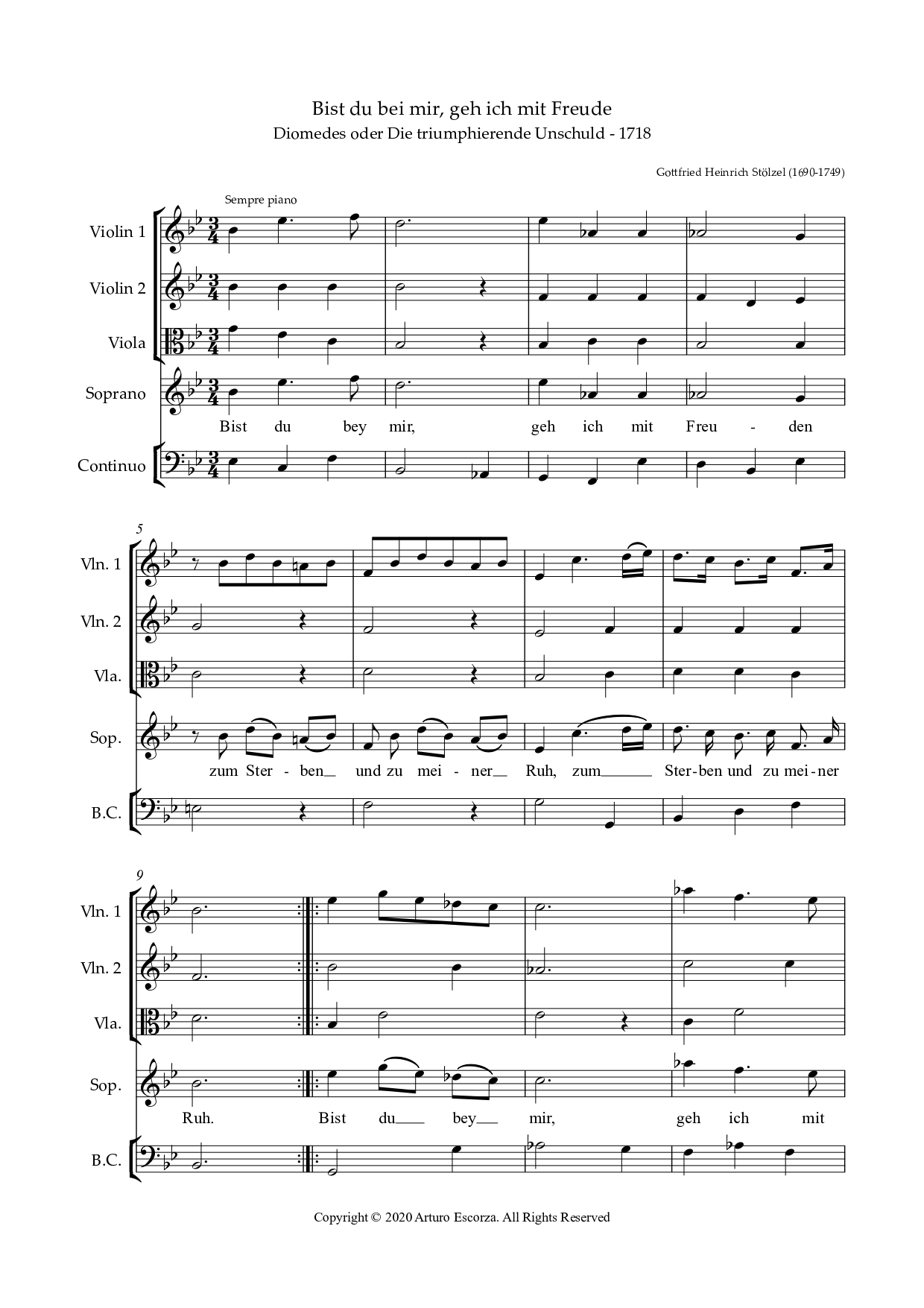 Bist du bei mir – G.H. Stölzel (Original Full Score & Parts)