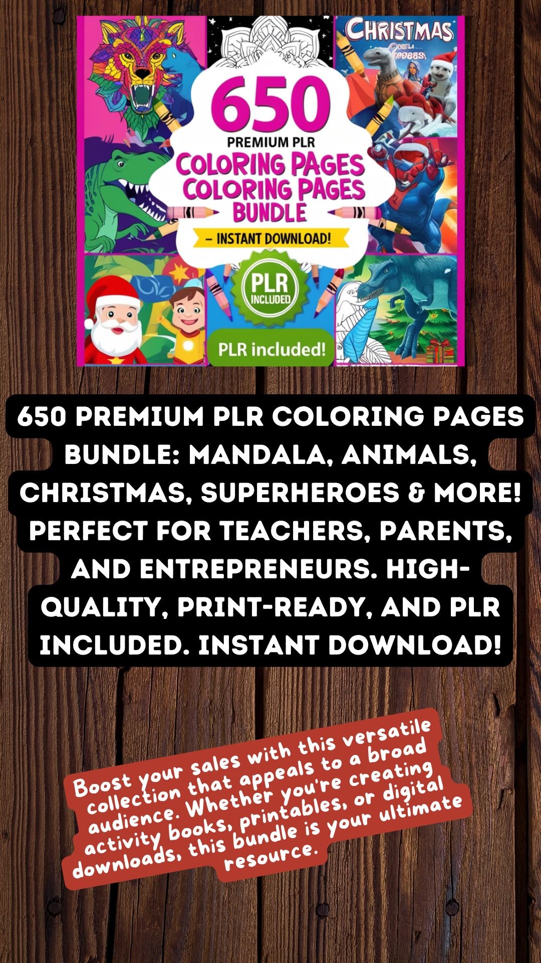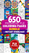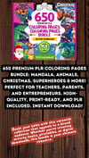 650 Premium PLR Coloring Pages Bundle: Mandala, Animals, Christmas, Superheroes & More!